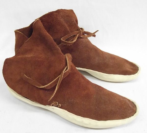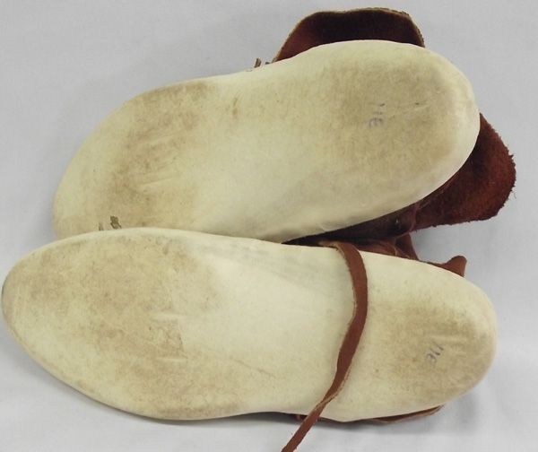 Navajo Moccasins. Gently used brown suede medium height moccasins. Approximate size 11E. They measure 11''L x 7''H x 4.5''W.