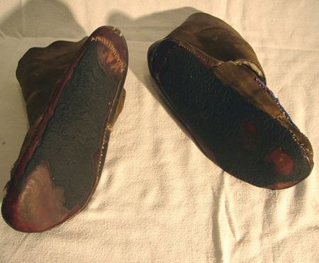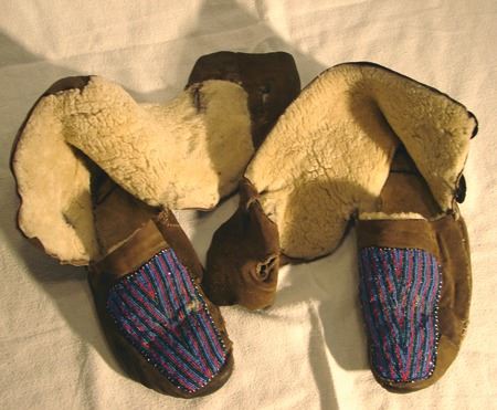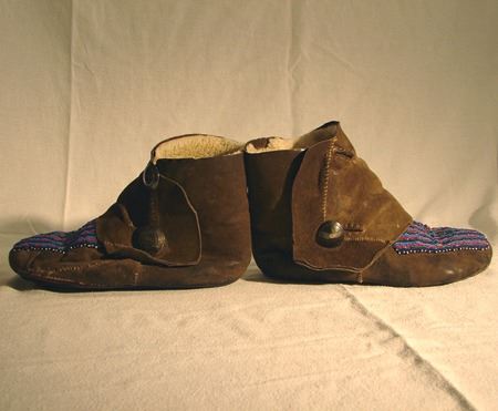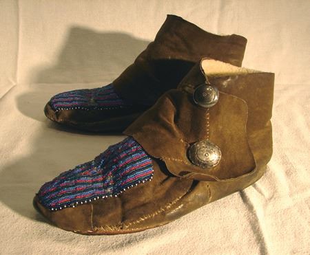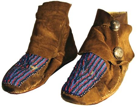 Ca. 1940s-1950s, Navajo beaded hide moccasins with conchos. 10-1/2"