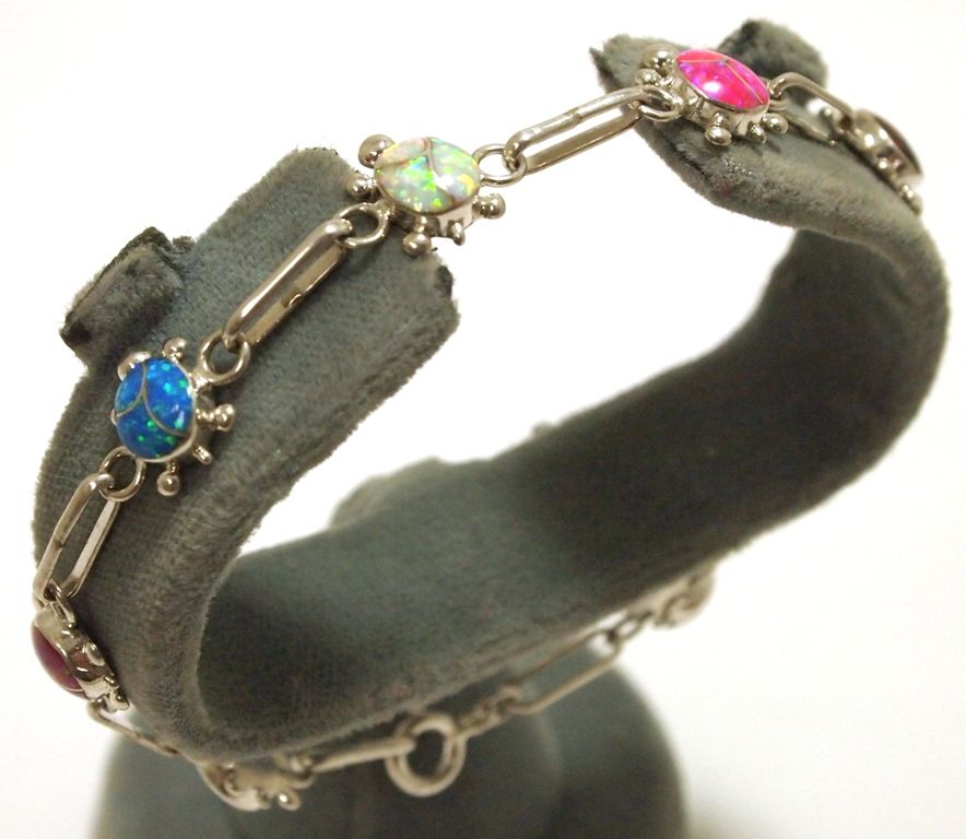 Measures 8" long by 7/16" wide (turtles), 1/8" wide (links). Stones may vary in both type and order; stones that may be present: White Opal, Light Blue Opal, Ocean Blue Opal, Green Opal, Pink Opal, Matte Pink Opal, Red Opal.