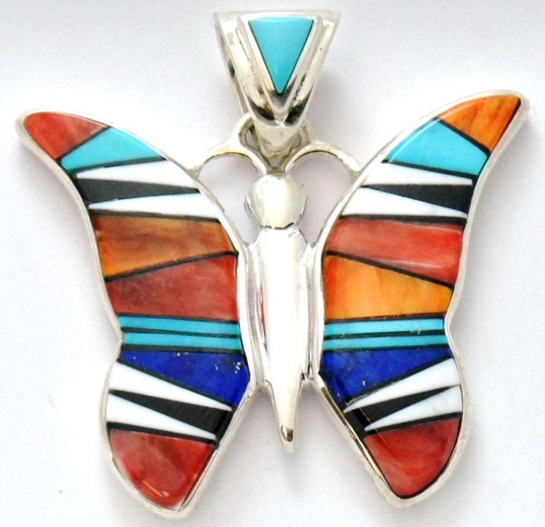 Navajo Multi-Stone Butterfly Pendant - Calvin Begay