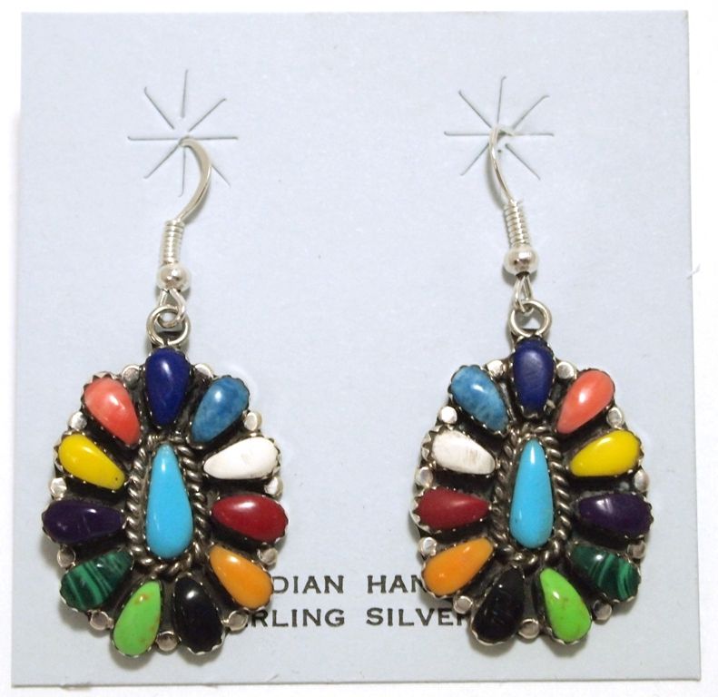 Navajo Multi-Stone Cluster Sterling Silver French Hook Earrings - Lisa Williams