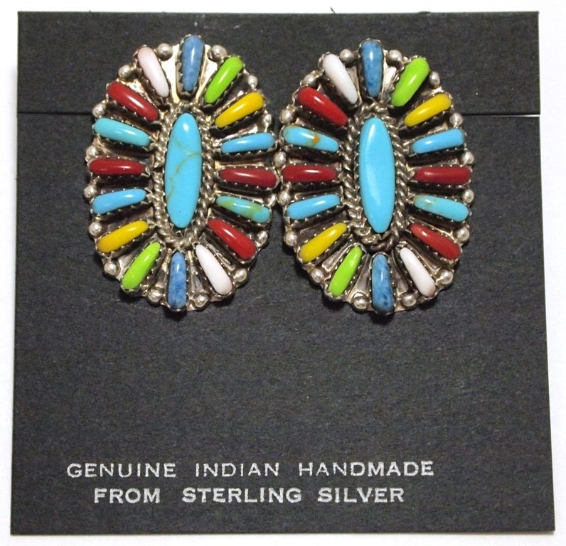 Navajo Multi-Stone Cluster Sterling Silver Post Earrings - Davina Benally