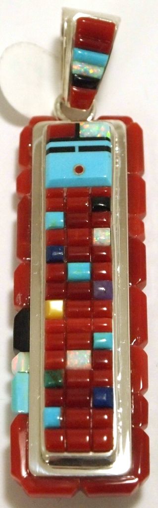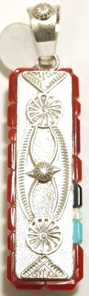 Navajo Multi-Stone Inlay Corn Sun Face Sterling Silver Pendant - Wilbert Manning
