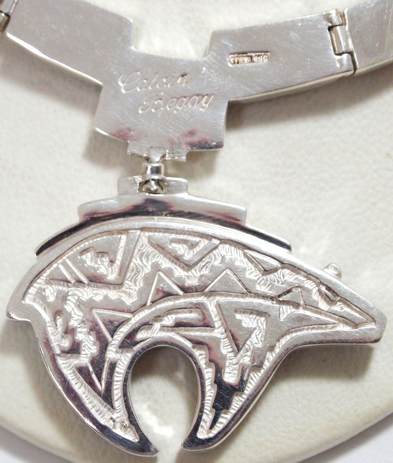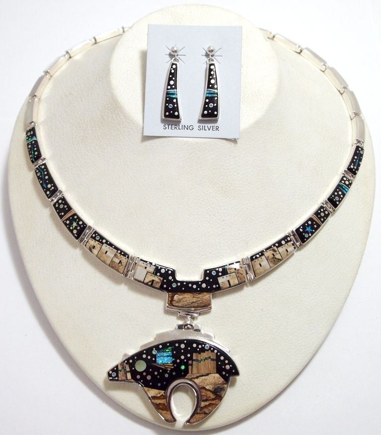 Navajo Multi-Stone Inlay Night Sky Bear Sterling Silver Necklace & Earrings Set - Calvin Begay