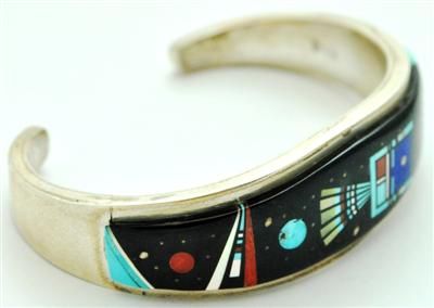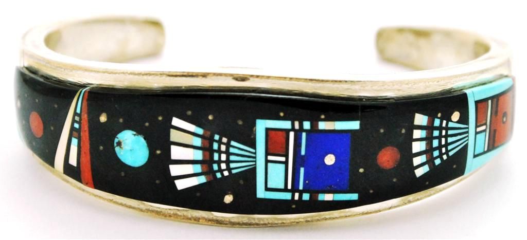 Navajo Multi-Stone Inlay Night Sky Sterling Silver Cuff Bracelet - Erwin Tsosie