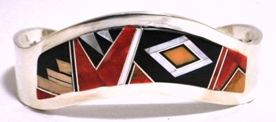 Navajo Multi-Stone Inlay Sterling Silver Cuff Bracelet - EPB