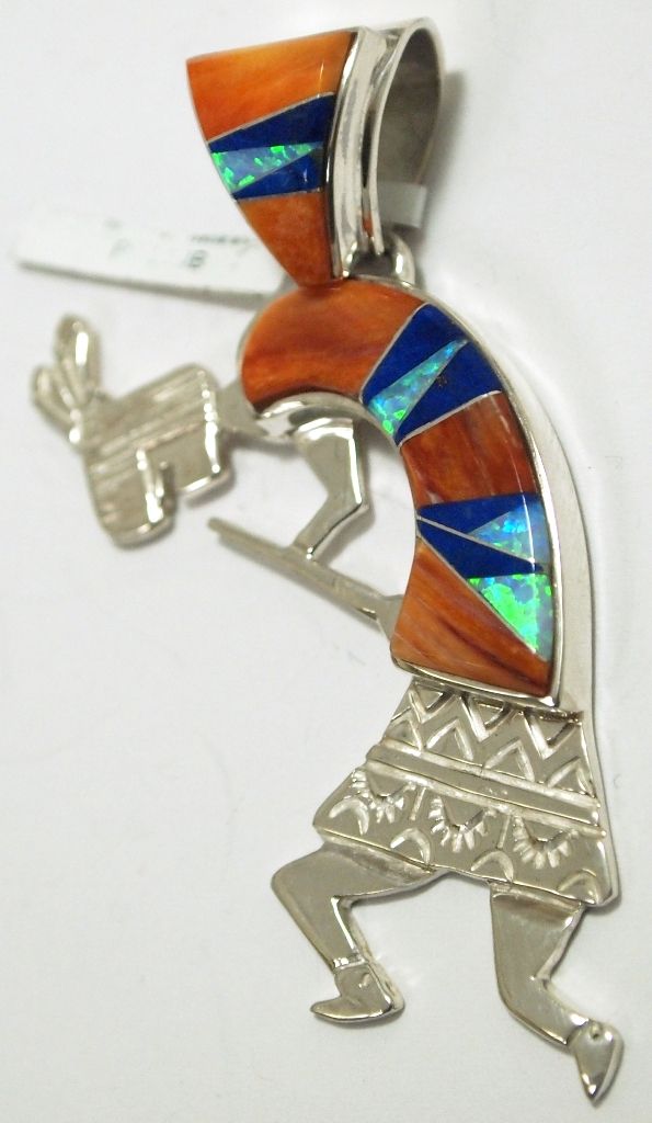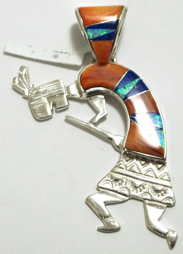 Navajo Multi-Stone Inlay Sterling Silver Kokopelli Pendant - Calvin Begay