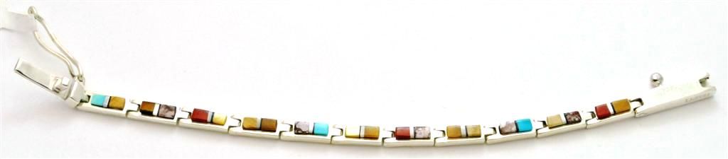 Navajo Multi-Stone Inlay Sterling Silver Link Bracelet - Edison Yazzie / Lazuli