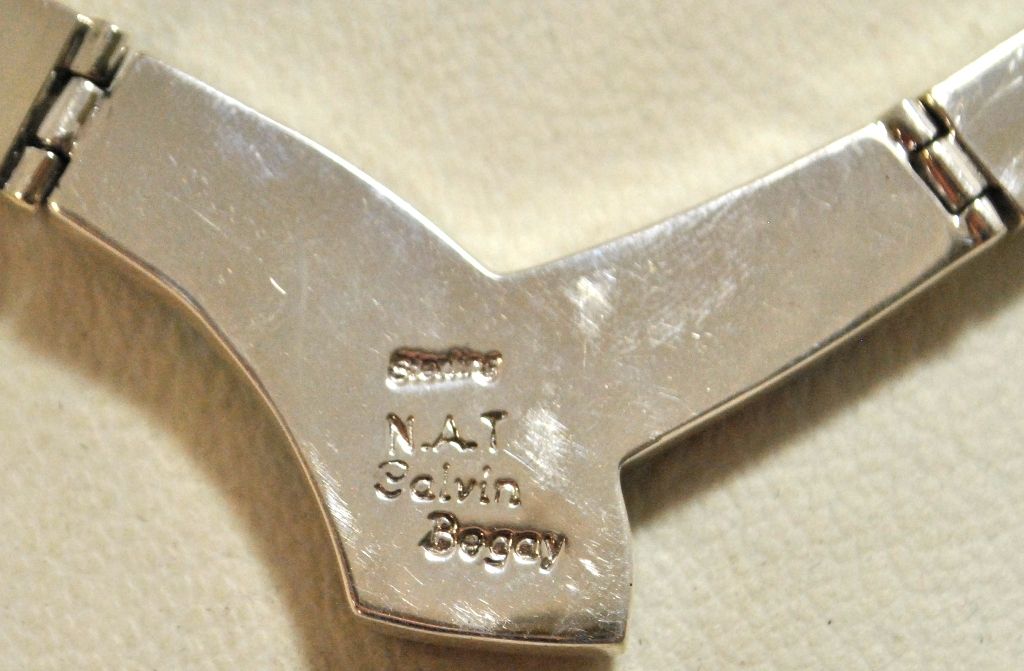 Necklace measures 18" around and ranges from 1/4" to 3/4" wide. Has a clasp and a locking chain to secure it. Weight: 60.0g