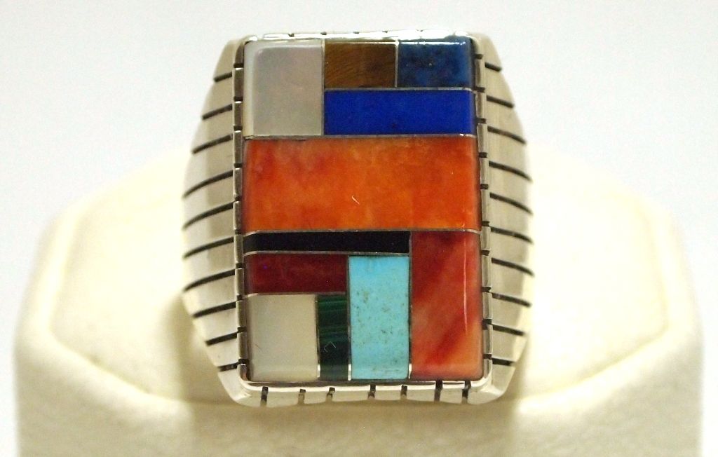 Navajo Multi-Stone Inlay Sterling Silver Men's Ring - Ray Jack