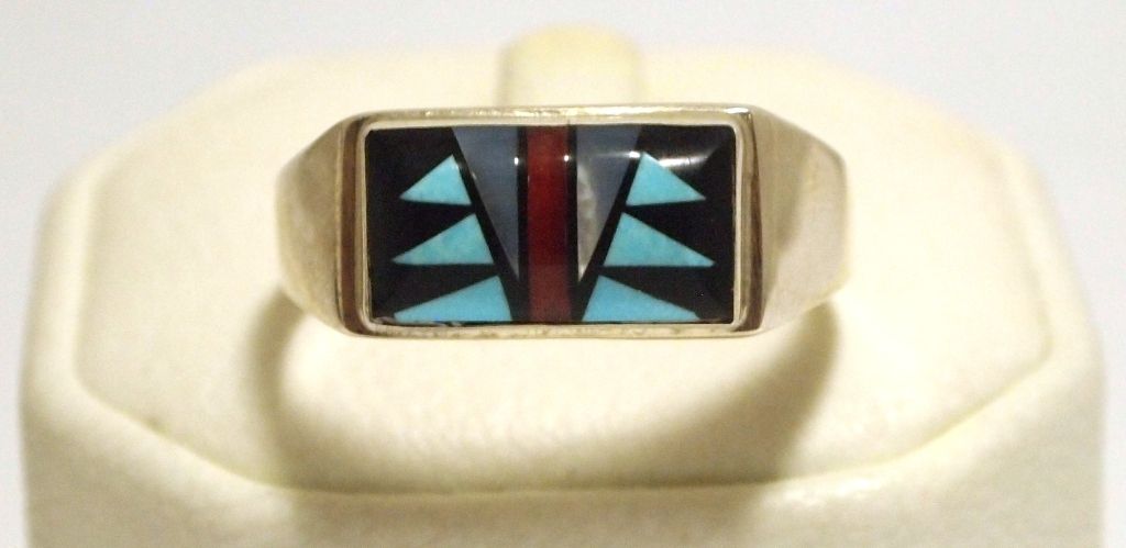 Navajo Multi-Stone Inlay Sterling Silver Men's Ring - Sam Begay