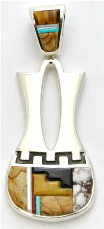 Navajo Multi-Stone Large Pottery Pendant - Edison Yazzie / Lazuli
