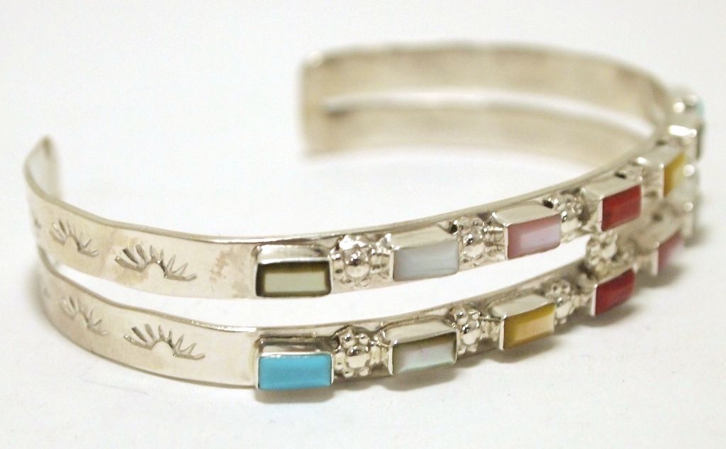 Navajo Multi-Stone Sterling Silver Cuff Bracelet - Ernest & Vivian Bewanika