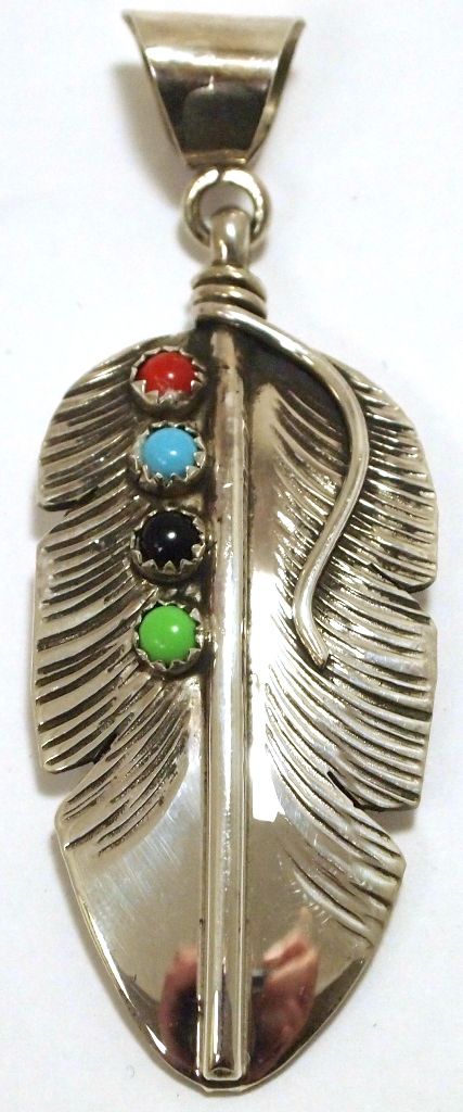 Navajo Multi-Stone Sterling Silver Feather Pendant - Vivan Jones