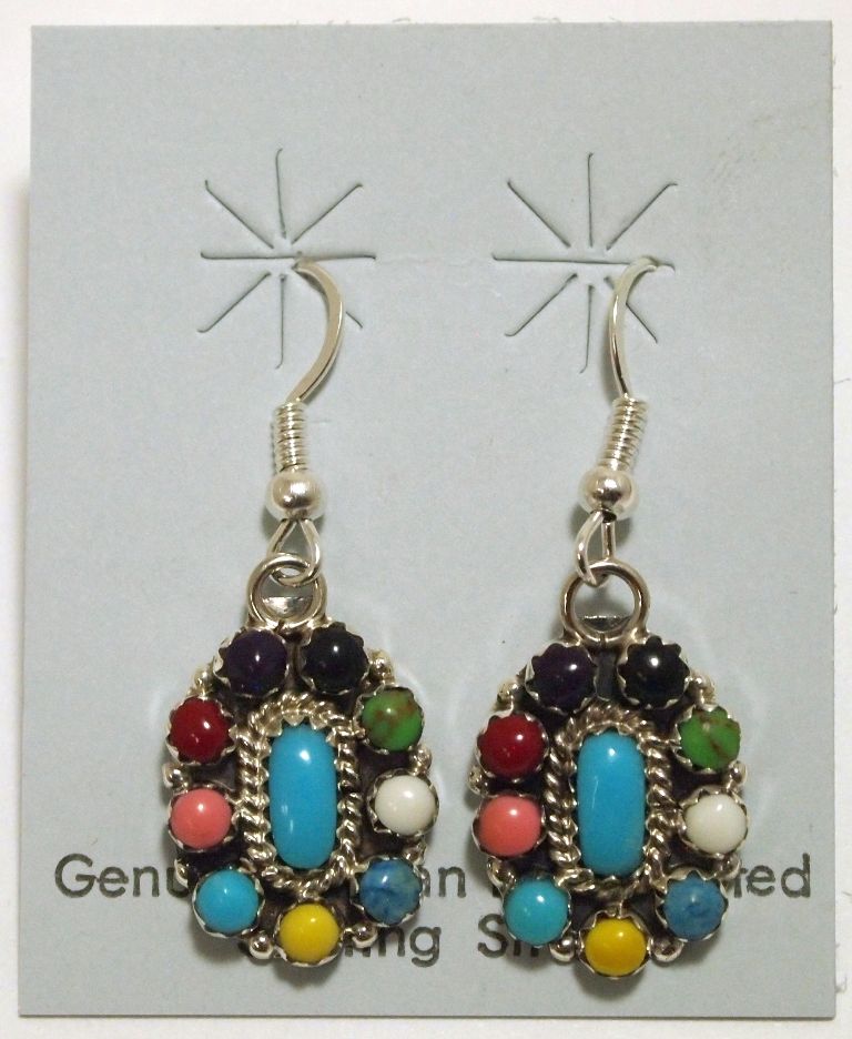 Navajo Multi-Stone Sterling Silver French Hook Earrings - Renee Williams