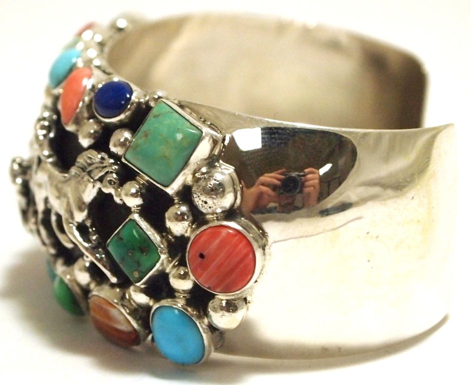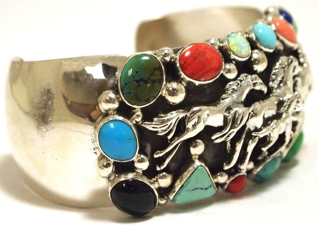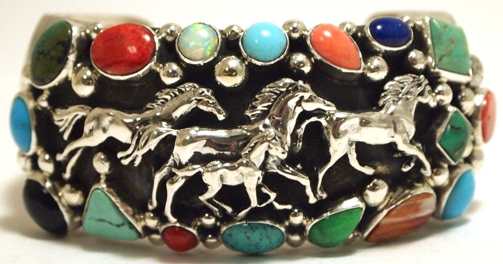 Navajo Multi-Stone Sterling Silver Horses Cuff Bracelet - Shakey