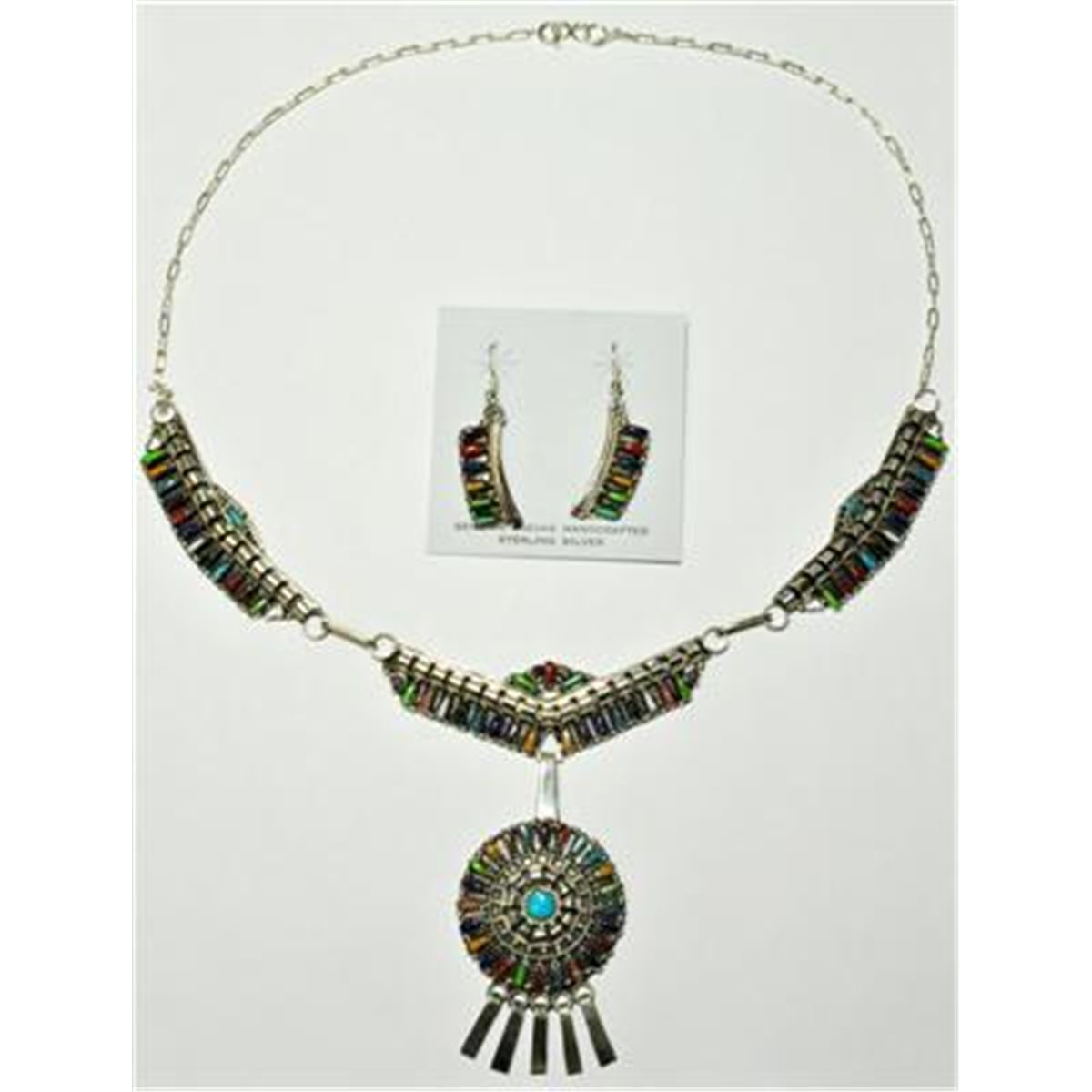 Necklace measures 21" around. Pendant meaures 2-3/4" tall by 1-1/2" wide. Weight: 34.3g.
