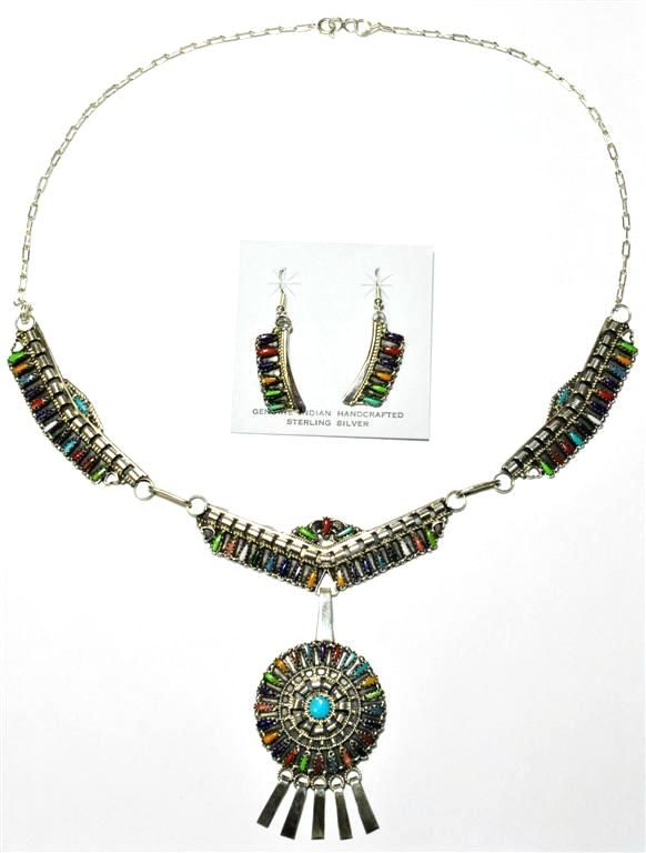 Navajo Multi-Stone Sterling Silver Necklace & Earrings Set - Violet Begay
