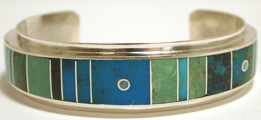 Navajo Multi-Turquoise Inlay Sterling Silver Cuff Bracelet - H. Smith