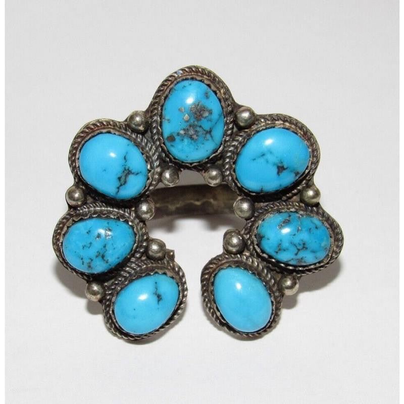 Navajo Naja Ring Size 9 Kingman Turquoise Statement Ring Native Signed