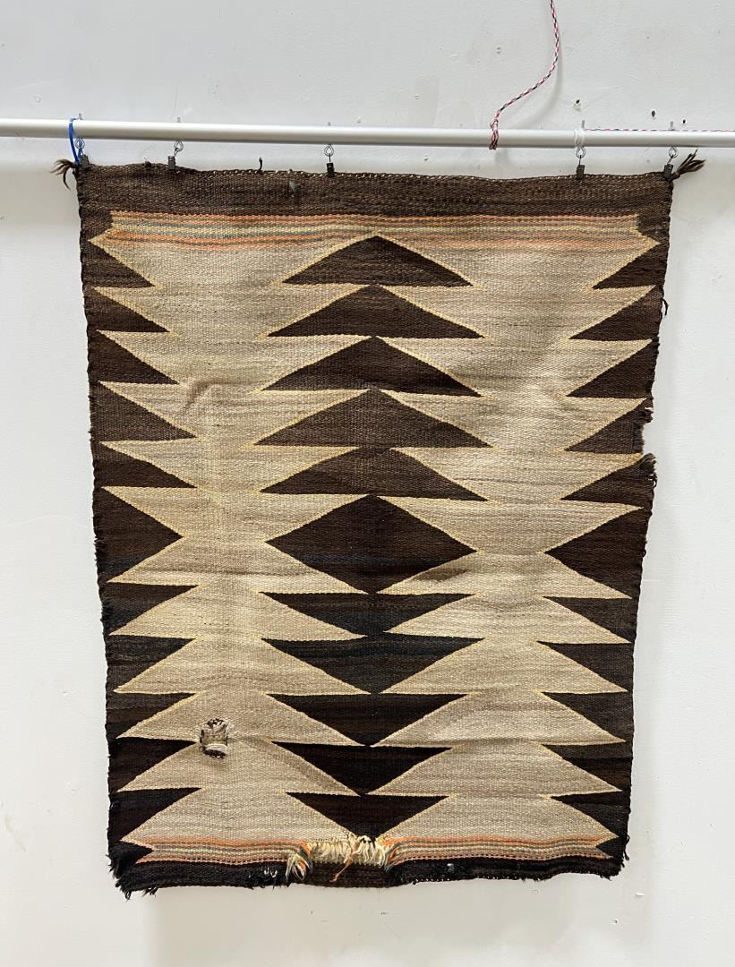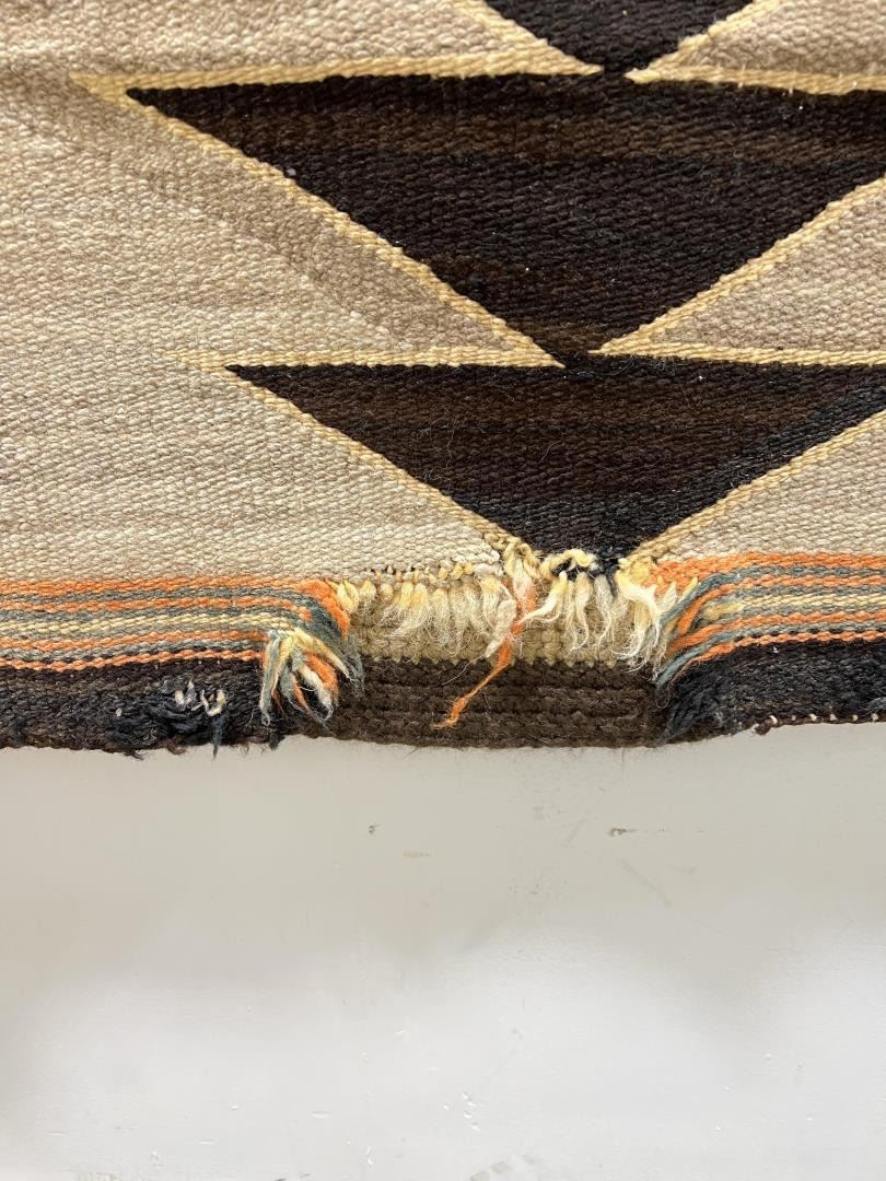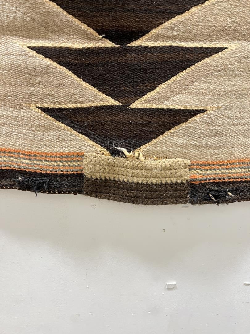 34 1/2" by 44 1/2". Wear and repairs as shown.