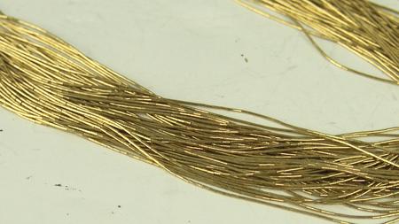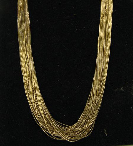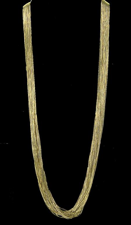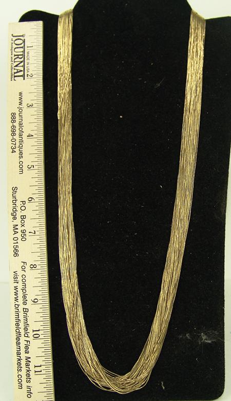 Circa 1980s, Super fine 50-strand gold-clad micro "liquid silver" necklace with solid 14KT gold cone tips. Excellent condition. 29" long From the Towne Collection.