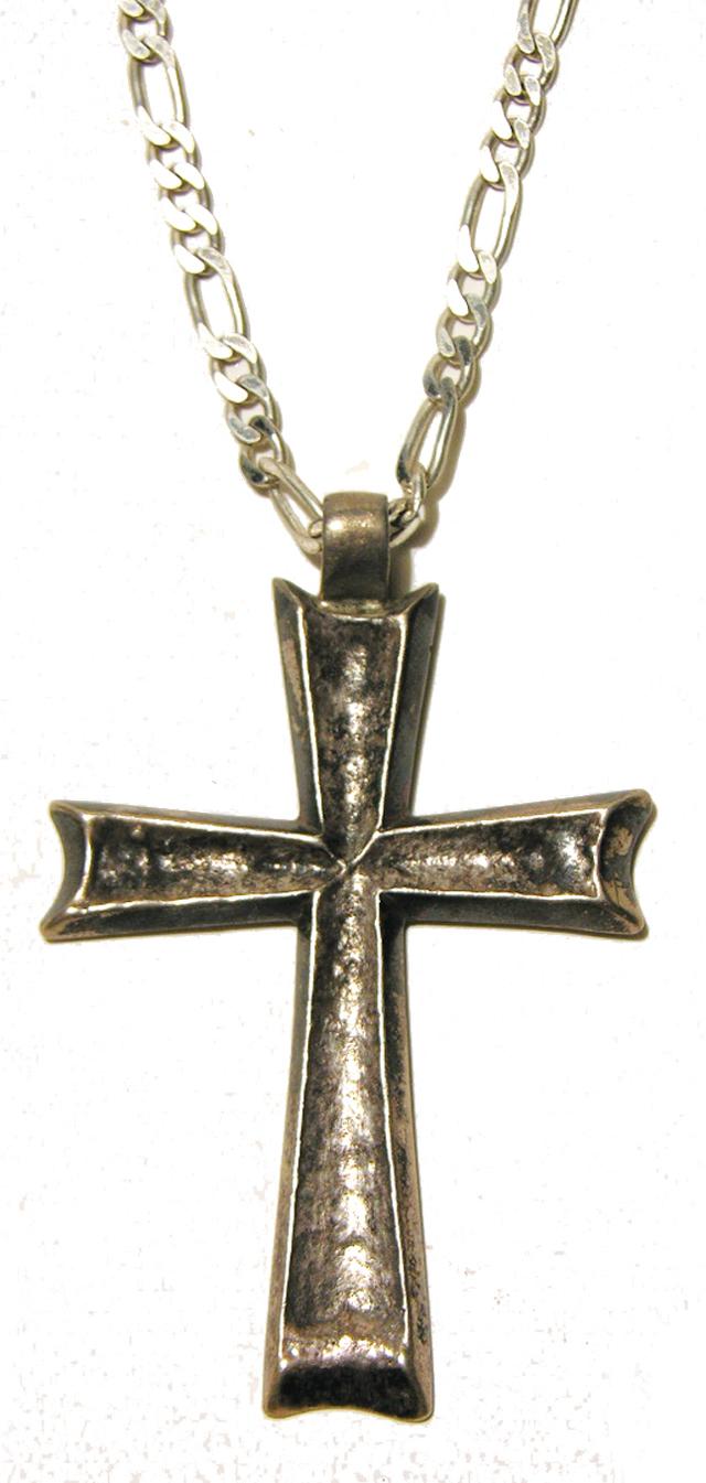 Circa 1974, Outstanding necklace with large hand wrought cross. Pendant 3"