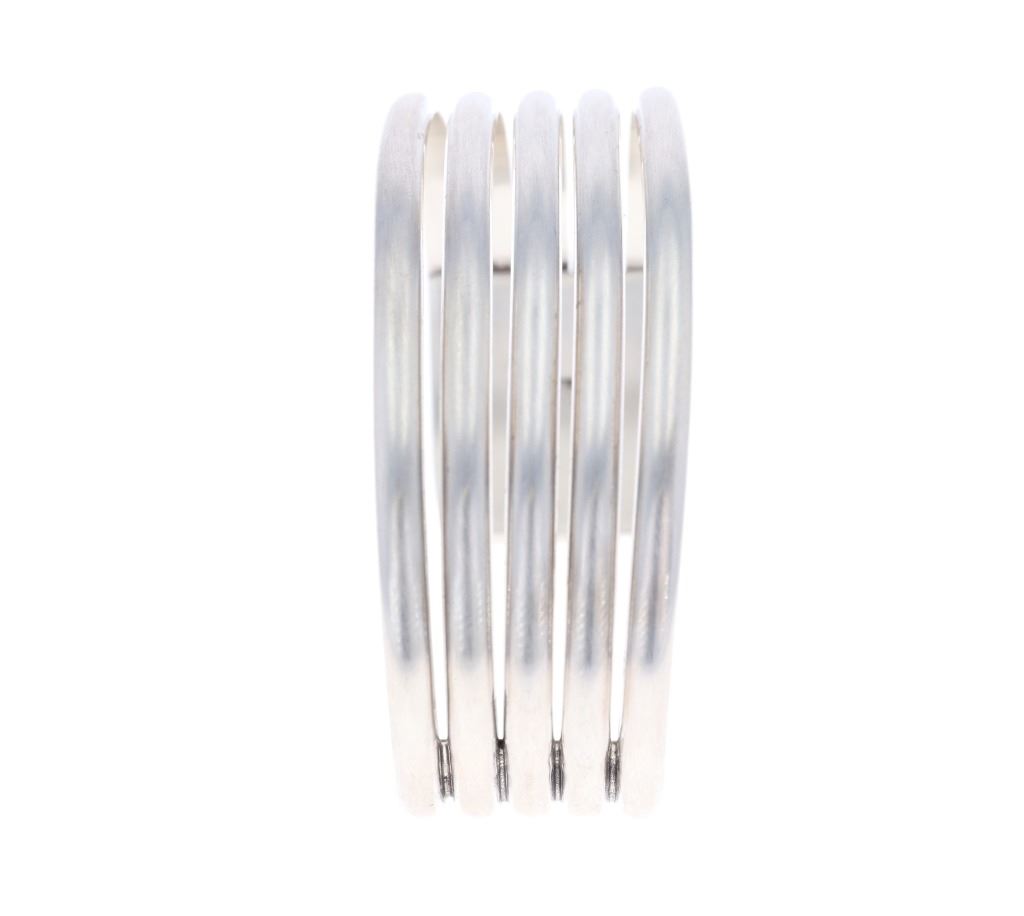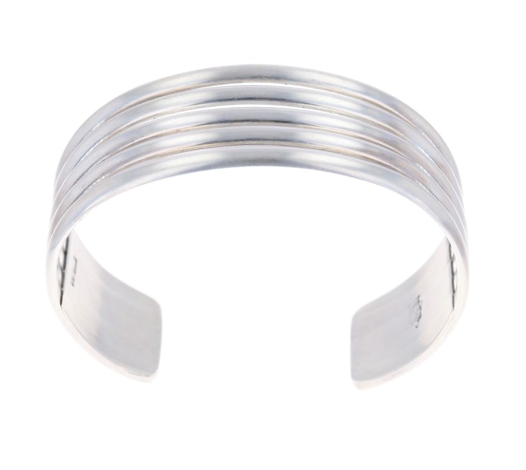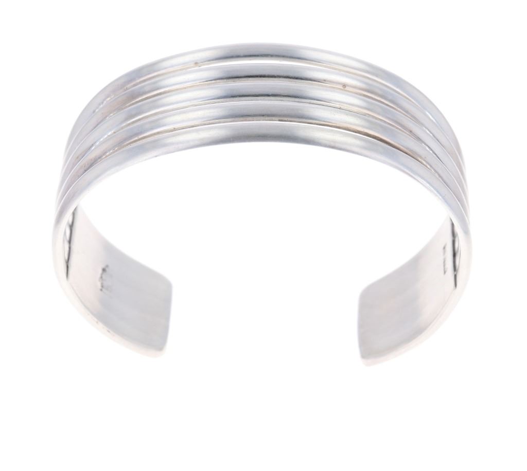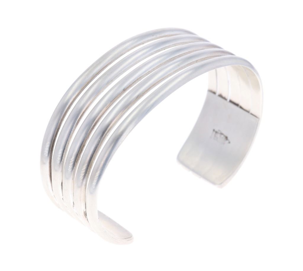 For your consideration is this five bar sterling cuff bracelet made by Navajo silversmith Nora Tahe. This bracelet features a five bar sterling design with the artist's hallmarks on the inside of the bracelet reading, "FV Jr. Tahe" on one side and "Sterling" on the opposite side. The bracelet shows good condition and construction with no signs of damage or wear. The bracelet has an inside circumference of approximately 7". The bracelet weighs 52.9 grams.*
