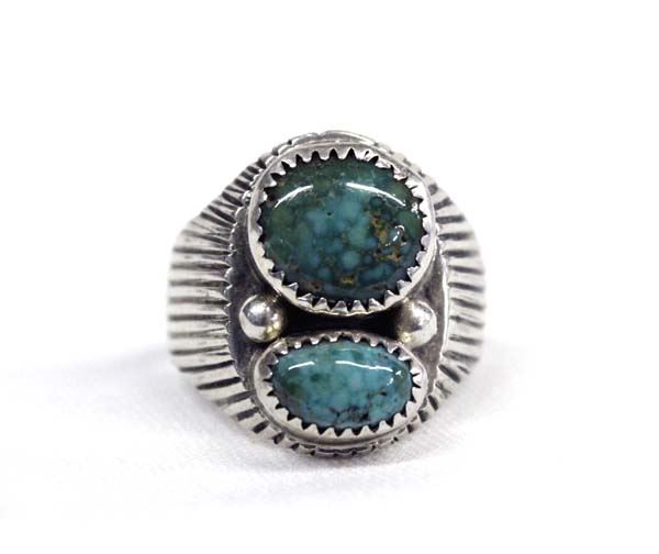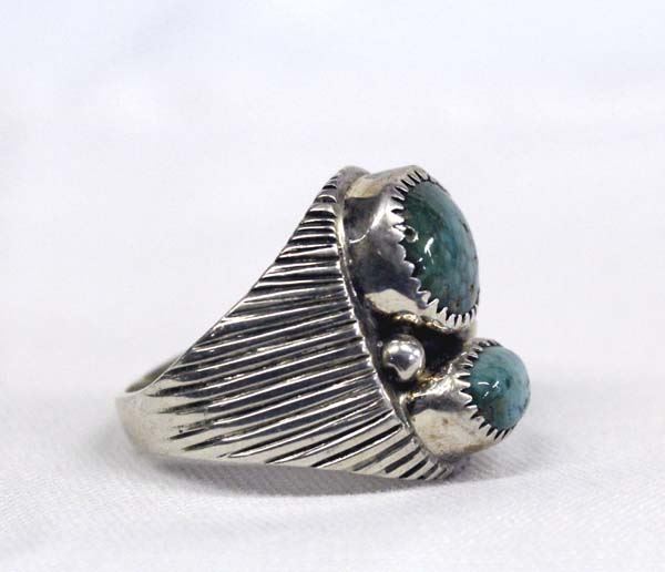 Navajo Old Pawn Silver Manassa Turquoise Ring, Size 11, measures .5''W x 1''L, weighs 13.8g, stunning turquoise cabochons
