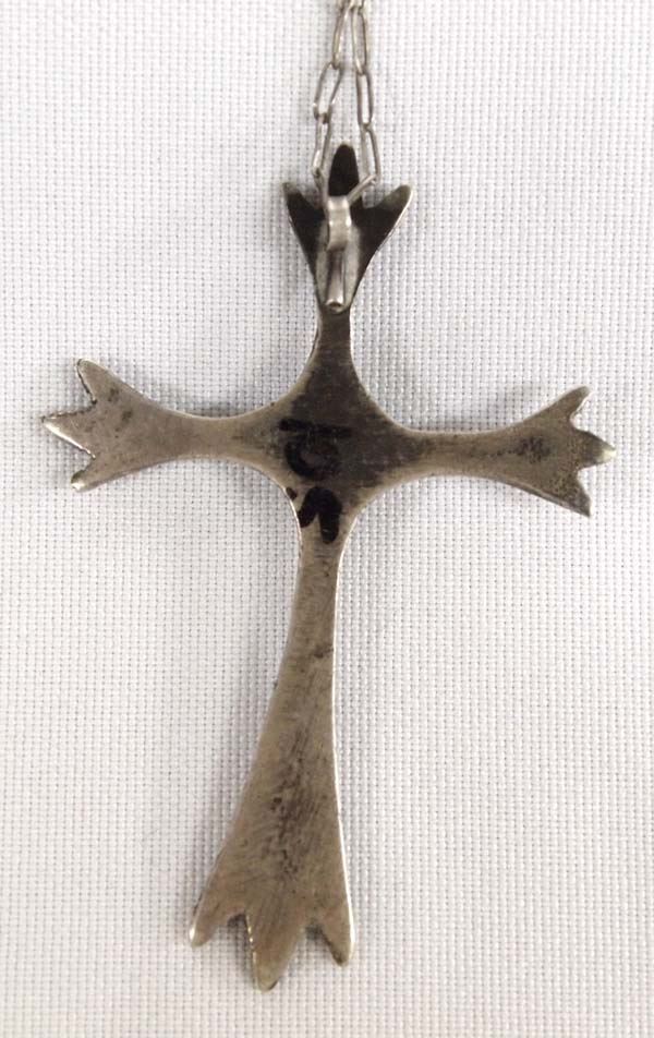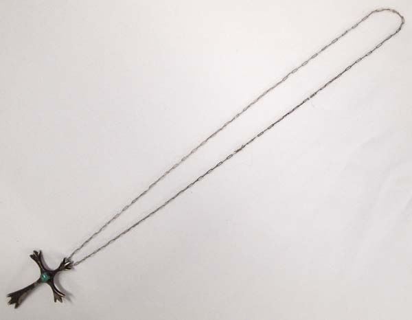 Native American Navajo Old Pawn Silver Turquoise Cross Pendant Necklace, beautiful hand wrought chain measures 24'' end to end and pendant measures 2.5'' x 2'', Sterling silver total weight 11.7g