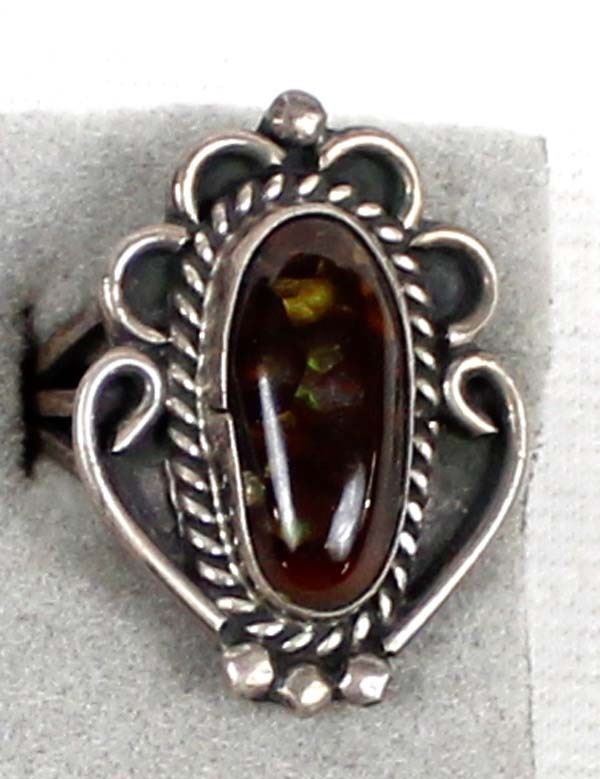 Navajo Old Pawn Sterling Fire Agate Ring, Size 8