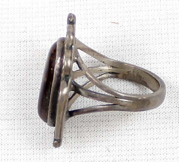 Native American Navajo Old Pawn Sterling Fire Agate Ring, Size 8, measures 1 1/8''L x 7/8''W