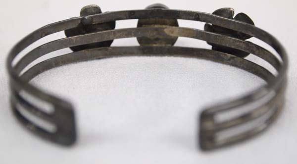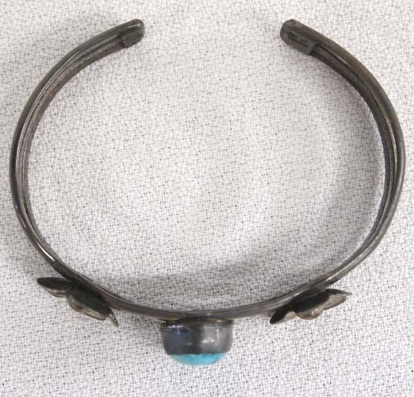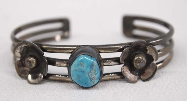 Native American 1940's Navajo Old Pawn Sterling Silver Turquoise Bracelet, inside measures 5.5'' which includes opening x .5''W, 14.16g in total wt.
