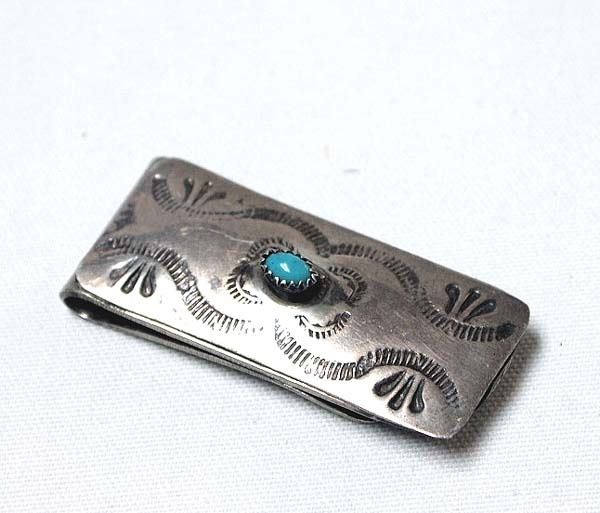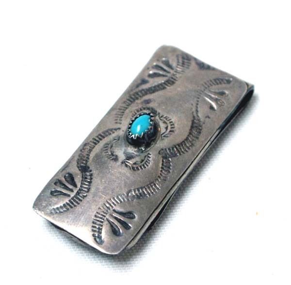 Navajo Old Pawn Sterling Silver & Turquoise Money Clip, measures 1.75'' x .75'', the very top piece (that's attached to the clip) is sterling silver, hand stamped details