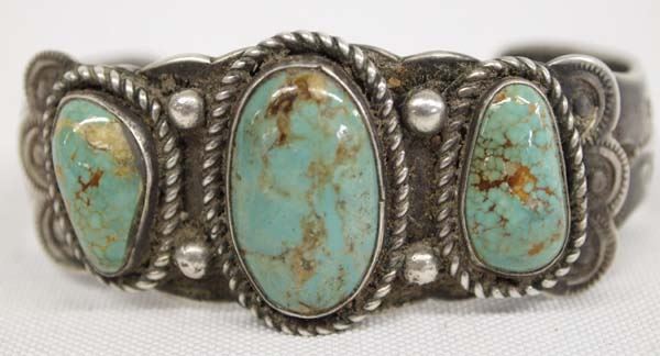 Native American Navajo Old Pawn Sterling Turquoise Bracelet, inside measures 6.5'' which includes opening x 1 1/8''W, absolutely gorgeous turquoise, 41.07g in total wt.