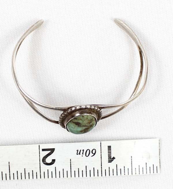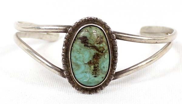 Native American Navajo Old Pawn Sterling Turquoise Bracelet, inside measures 6'' which includes the gap x 1''W