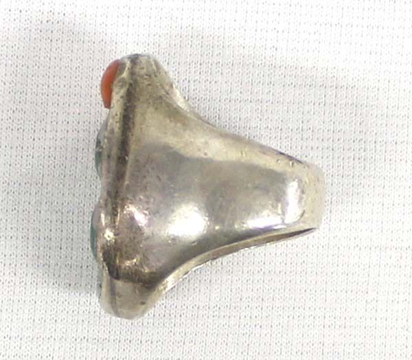 Native American Navajo Old Pawn Sterling Turquoise Coral Ring, Size 9, measures 1.25''L, 28.15gtw