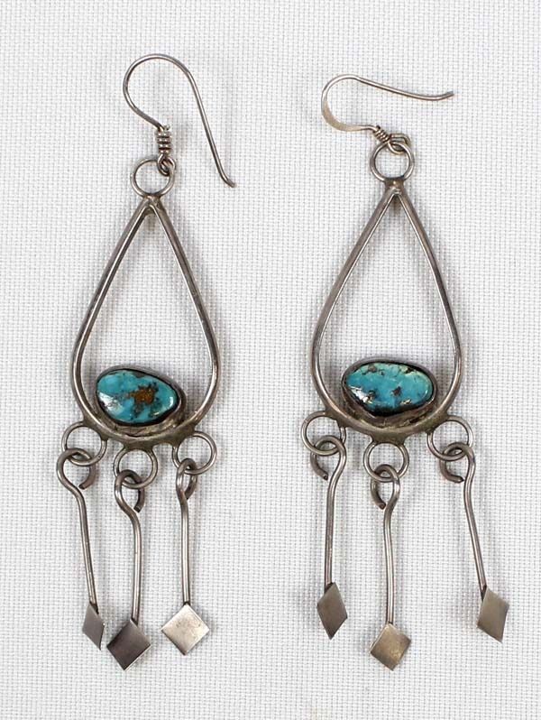 Native American Navajo Old Pawn Sterling Turquoise Earrings, measure .75'' x 3.25''L which includes the wire