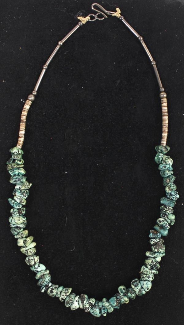 Navajo Old Pawn Sterling Turquoise Nugget Choker size 14