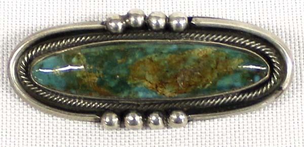 Native American Navajo Old Pawn Sterling Turquoise Pin, measures 1.5'' x .5'', gorgeous turquoise, stone is cracked