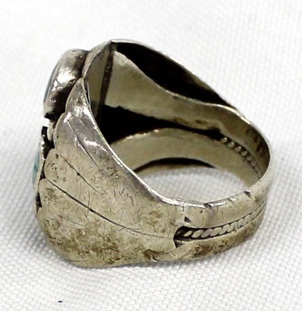 Native American Navajo Old Pawn Sterling Turquoise Ring, Size 11.5, measures 1''L