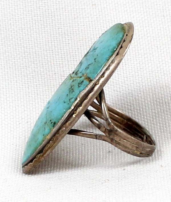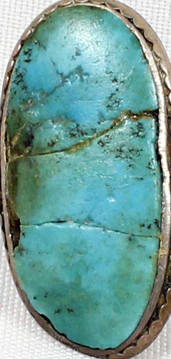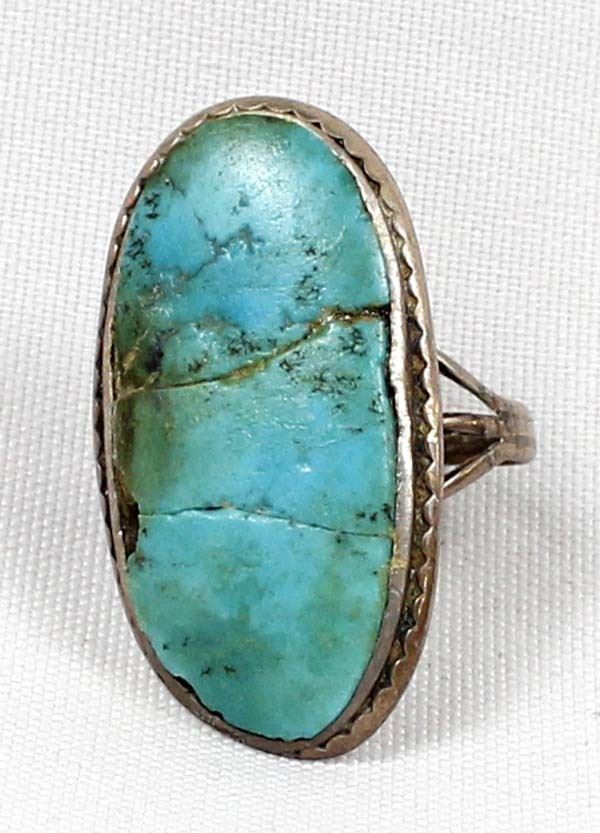Vintage Native American Navajo Old Pawn Sterling Turquoise Ring, Size 10, measures 1.5''L x 7/8''W, stone has 2 cracks, ca. 1930s