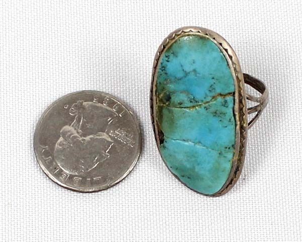 Navajo Old Pawn Sterling Turquoise Ring, Size 10
