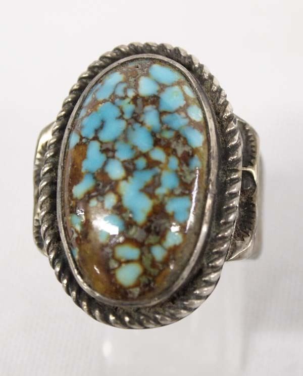 Native American Navajo Old Pawn Sterling Turquoise Ring, Size 11.5, measures 1 1/8'' x 7/8'', features gorgeous turquoise cabochon and wide shank, 18.5g in total wt.