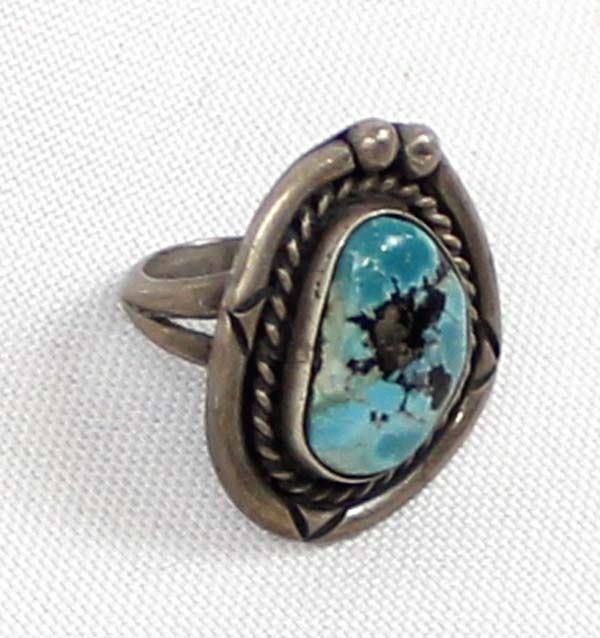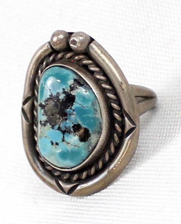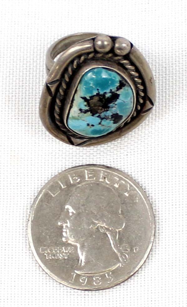 Navajo Old Pawn Sterling Turquoise Ring, Size 4