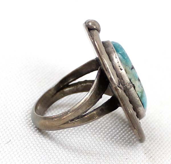 Native American Navajo Old Pawn Sterling Turquoise Ring, Size 4, measures 1'' x 7/8''
