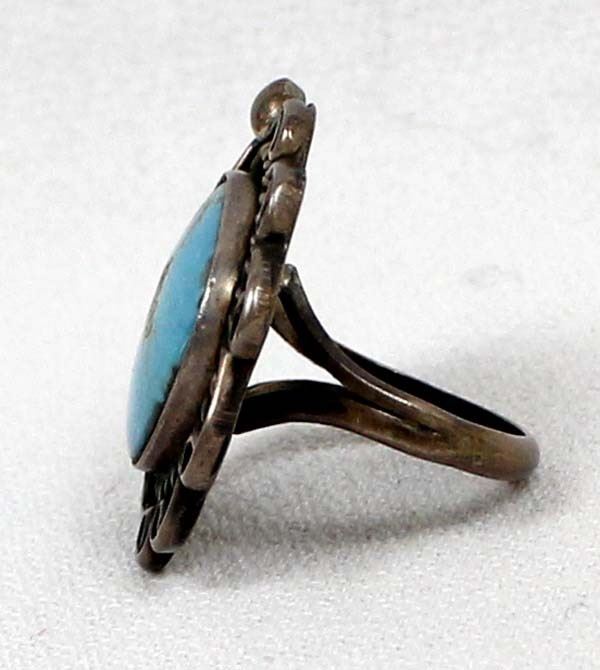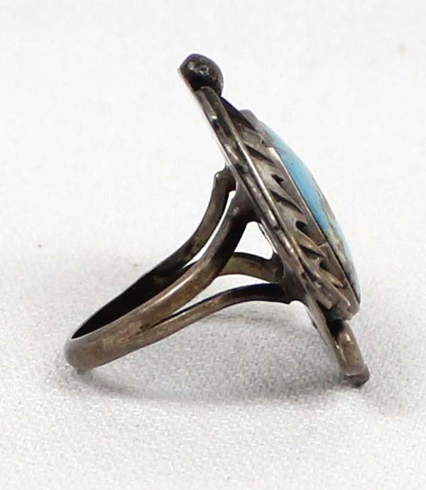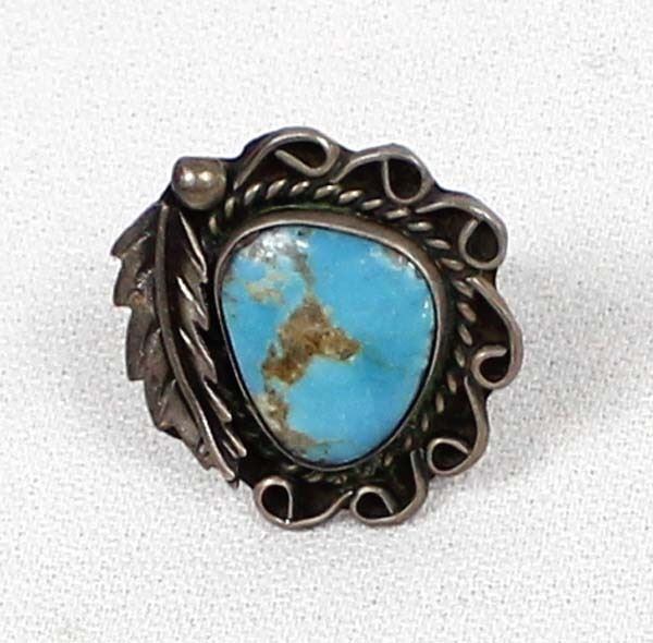 Navajo Old Pawn Sterling Turquoise Ring, Size 6.5
