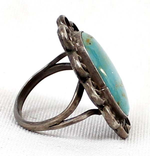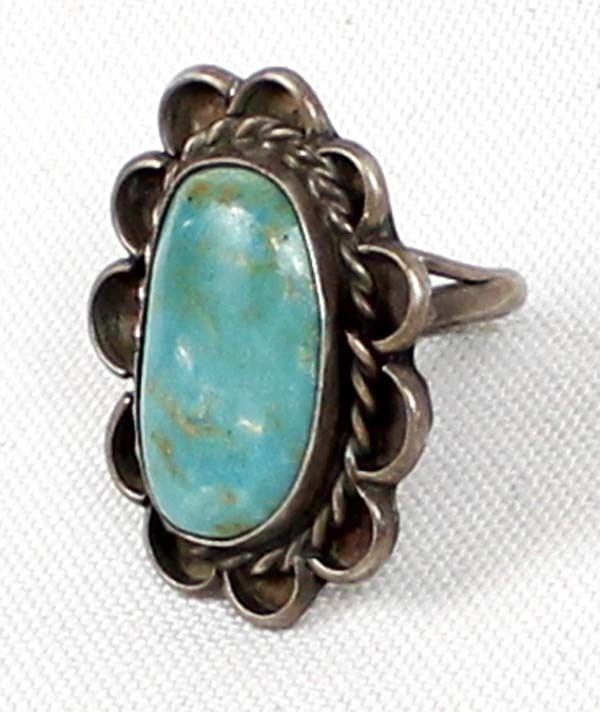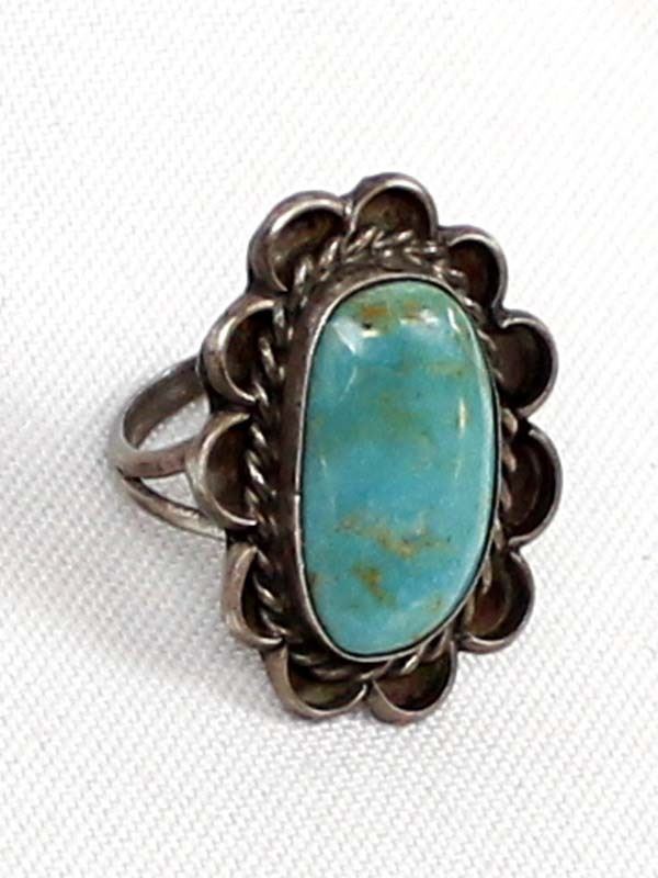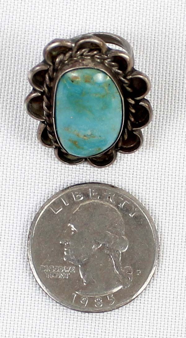 Navajo Old Pawn Sterling Turquoise Ring, Size 6.5