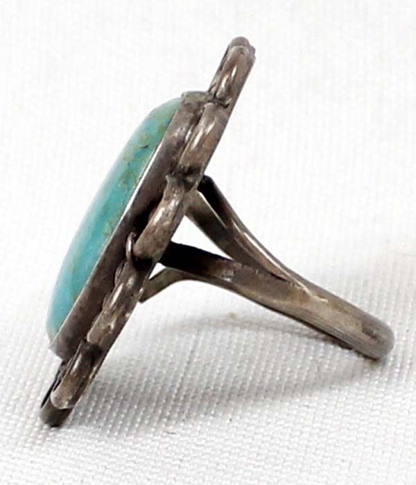 Native American Navajo Old Pawn Sterling Turquoise Ring, Size 6.5, measures 1.25''L