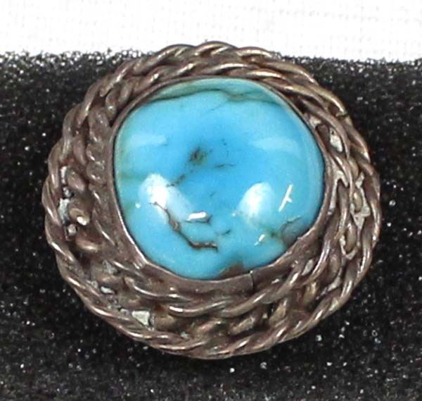 Navajo Old Pawn Sterling Turquoise Ring, Size 8